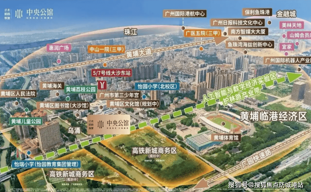 黄埔儿童公园、荔枝公园、黄埔公园等五大生态空间环抱,又能间接衔接广州东进计谋的成长盈利,项目紧邻地铁 5 号线 号线交汇的大沙东坐。